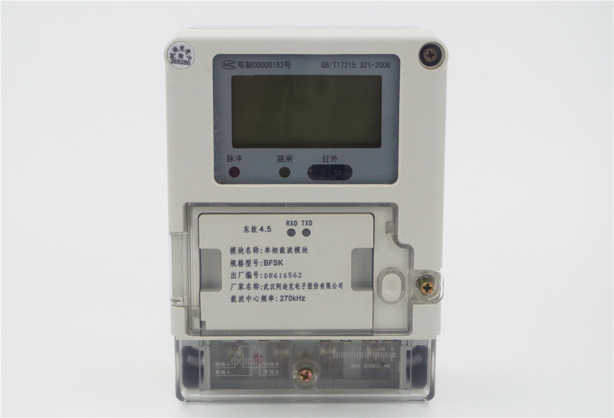 BFSK單相載波模塊電能表是本公司研制生產(chǎn)的智能型電能計量產(chǎn)品,適用于額定電壓220V、頻率50Hz的單相交流有功電能的計量。具有獨立的調(diào)制式紅外光口和 1 路RS485 通訊口,并配有載波通信模塊標準接口,可選配多家載波通信模塊;通過載波通信或RS485通信,可支持遠程費控功能;該表具有高可靠、高精度、長壽命等優(yōu)點。它適應電壓范圍寬,且整機出廠后無須調(diào)整??蓮V泛應用于城市、農(nóng)村或工廠企業(yè)單相交流電的計量場合。